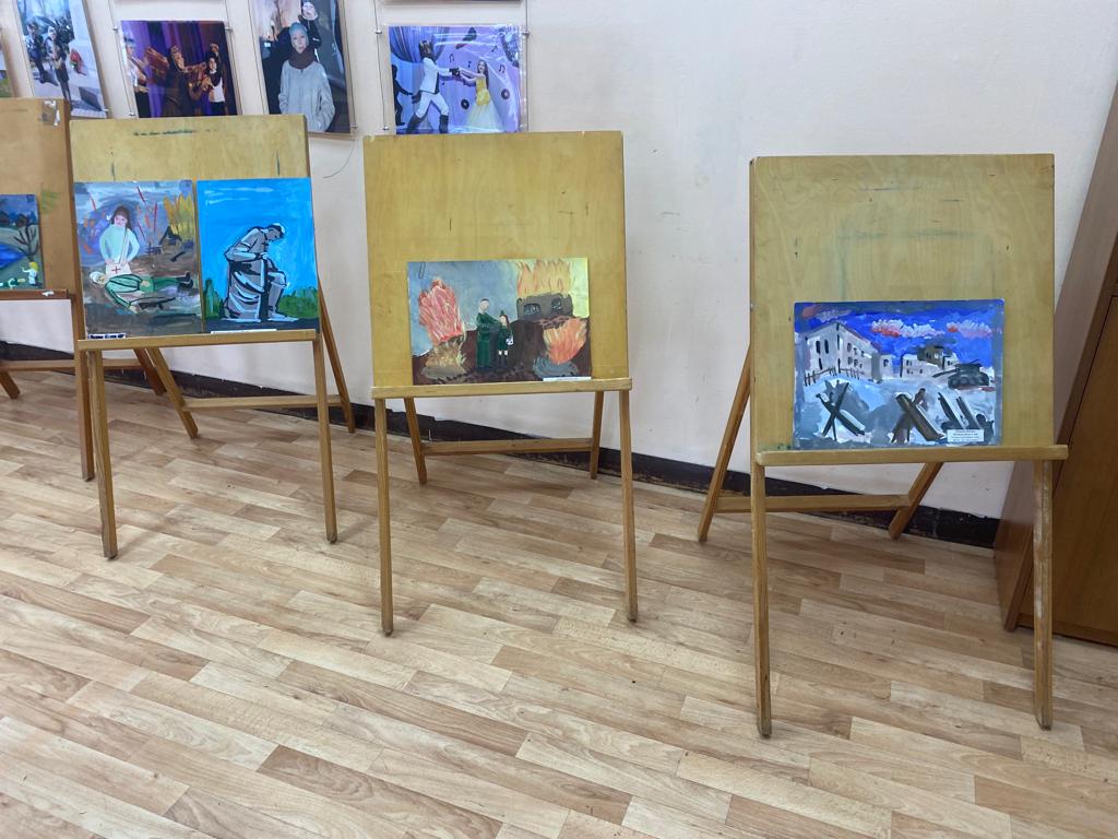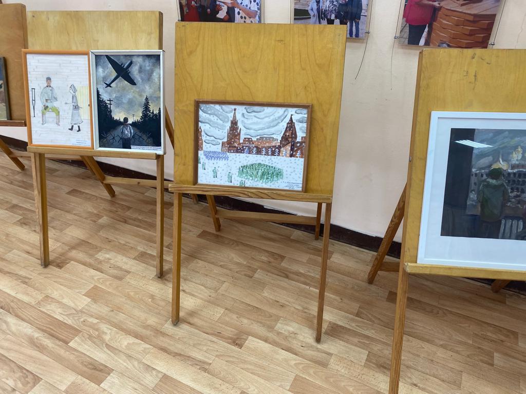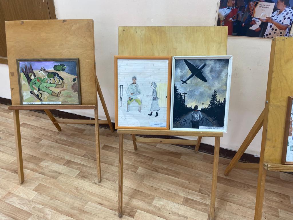 В фойе ДК была организована выставка детских работ, посвященных воинам. Эти работы не оставили равнодушными ветеранов, задев их за самое живое.