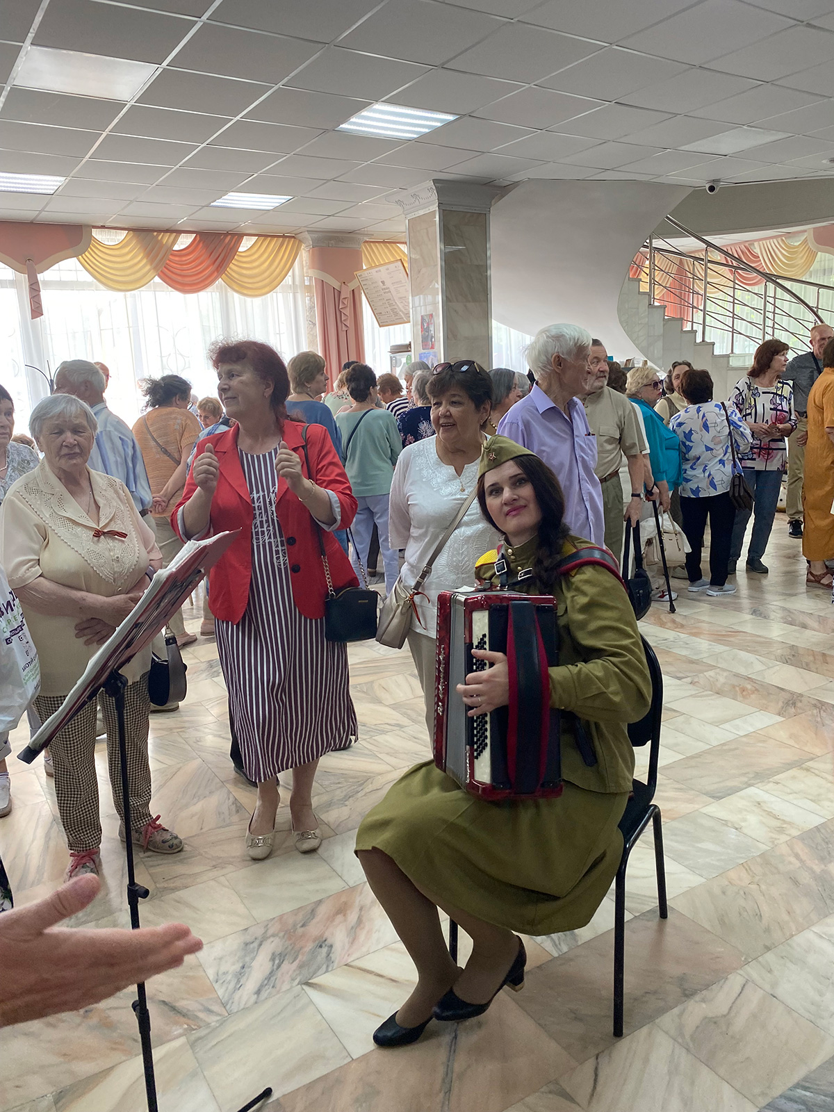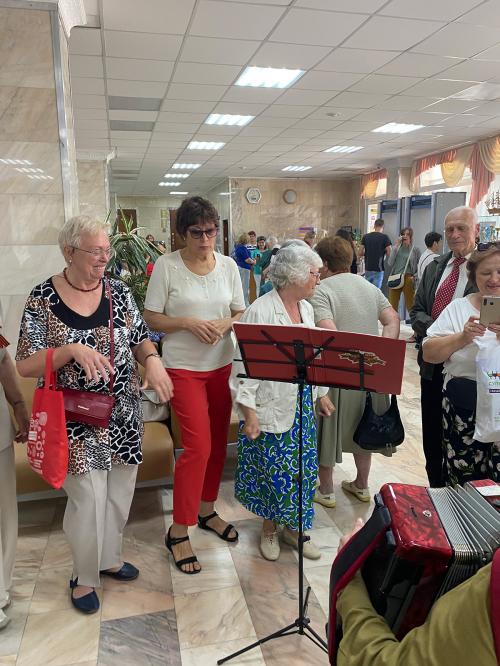 Днем ветераны всех поселений ТиНАО посетили ДК Вороново, где посмотрели спектакль по пьесе Арбузова «Мой бедный Марат». Перед спектаклем в холле ДК звучали военные песни, которые с воодушевлением пели Ветераны.
