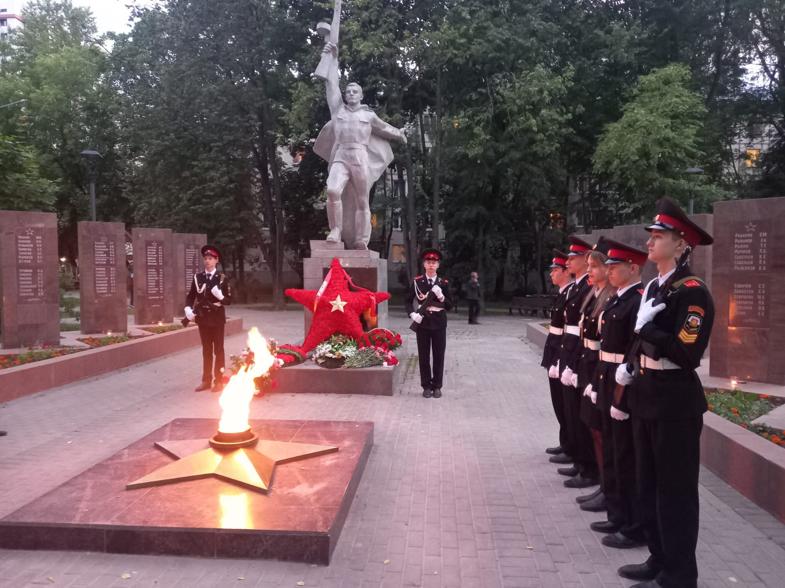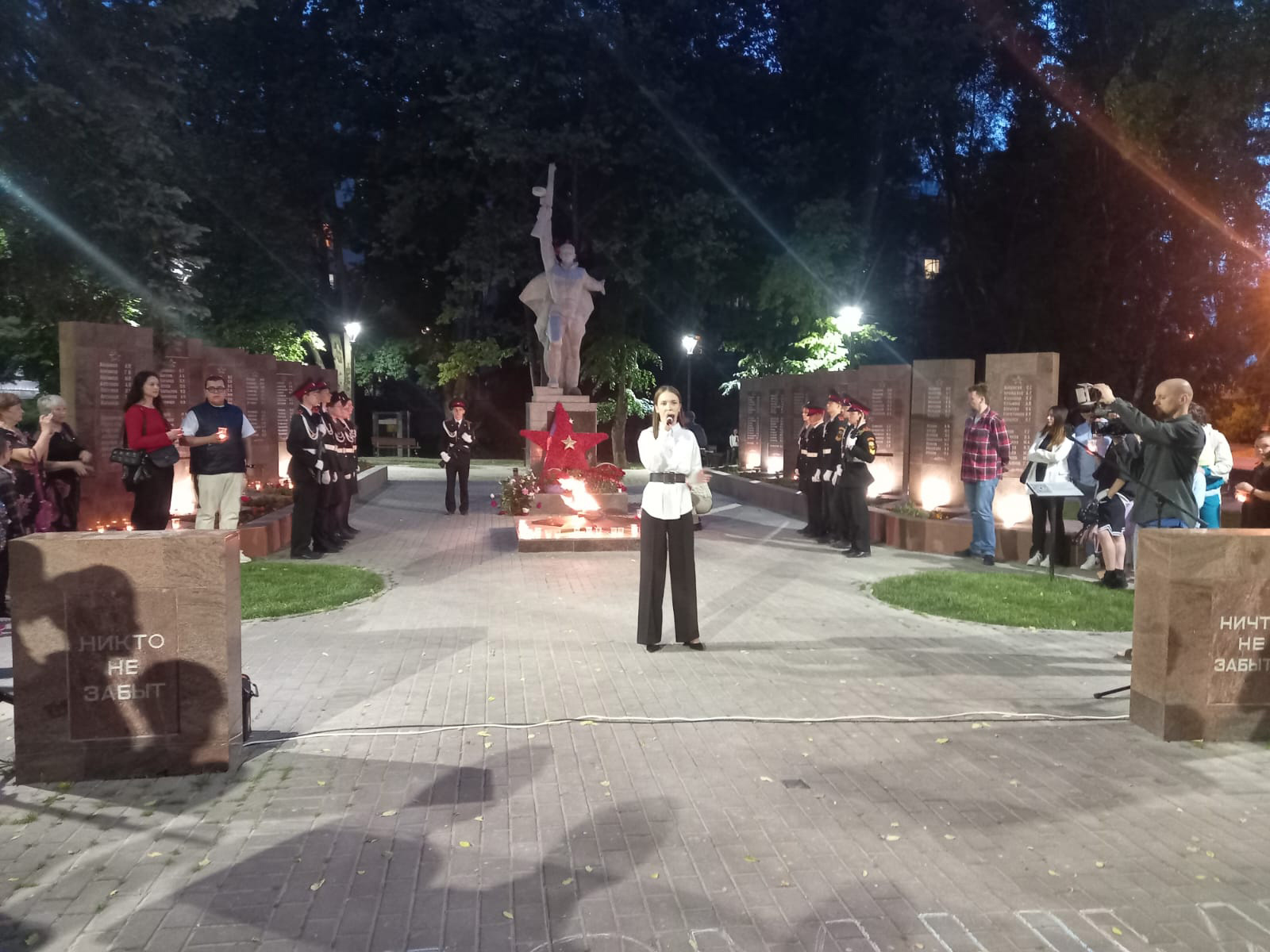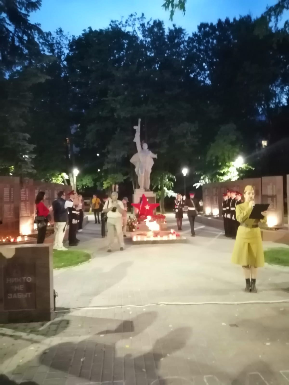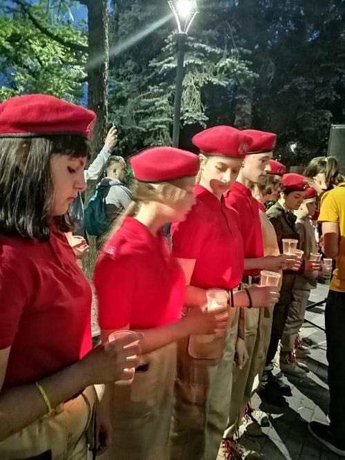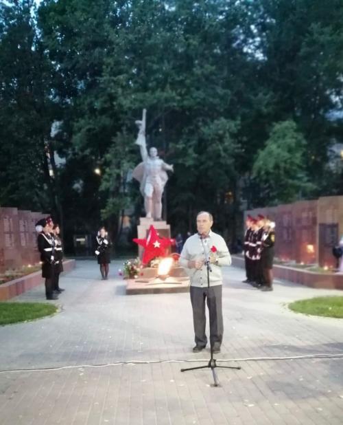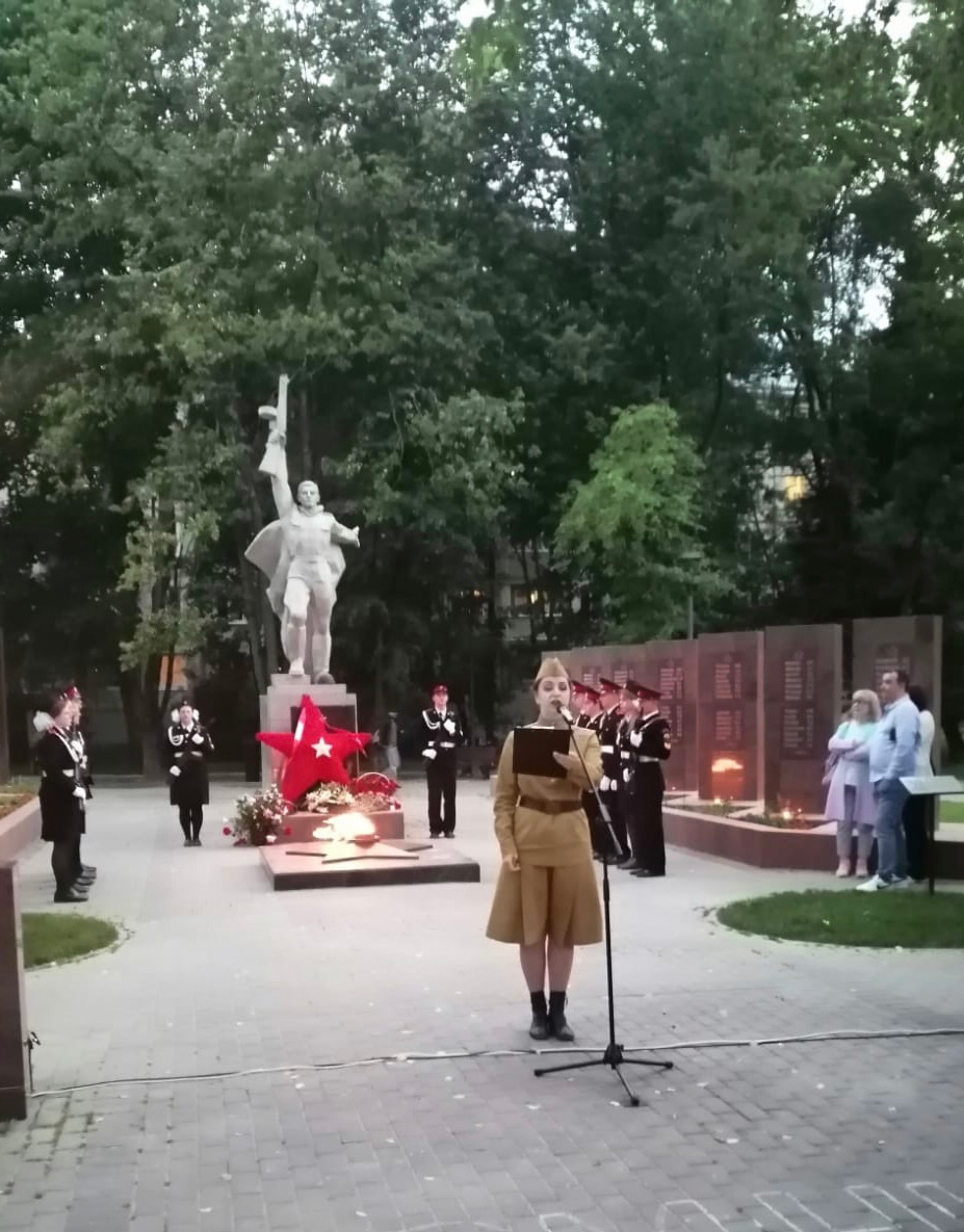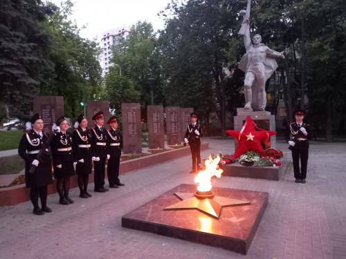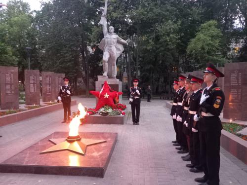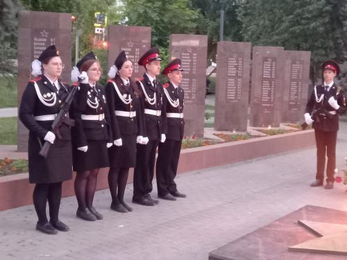 В 21.30 час у Вечного огня прошла акция «СВЕЧА ПАМЯТИ», на которой были зажжены свечи в честь 27 миллионов погибших в Великой Отечественной войне 1941-45 г.г. В торжественном карауле стояли кадеты города. В руках у юнармейцев были свечи.