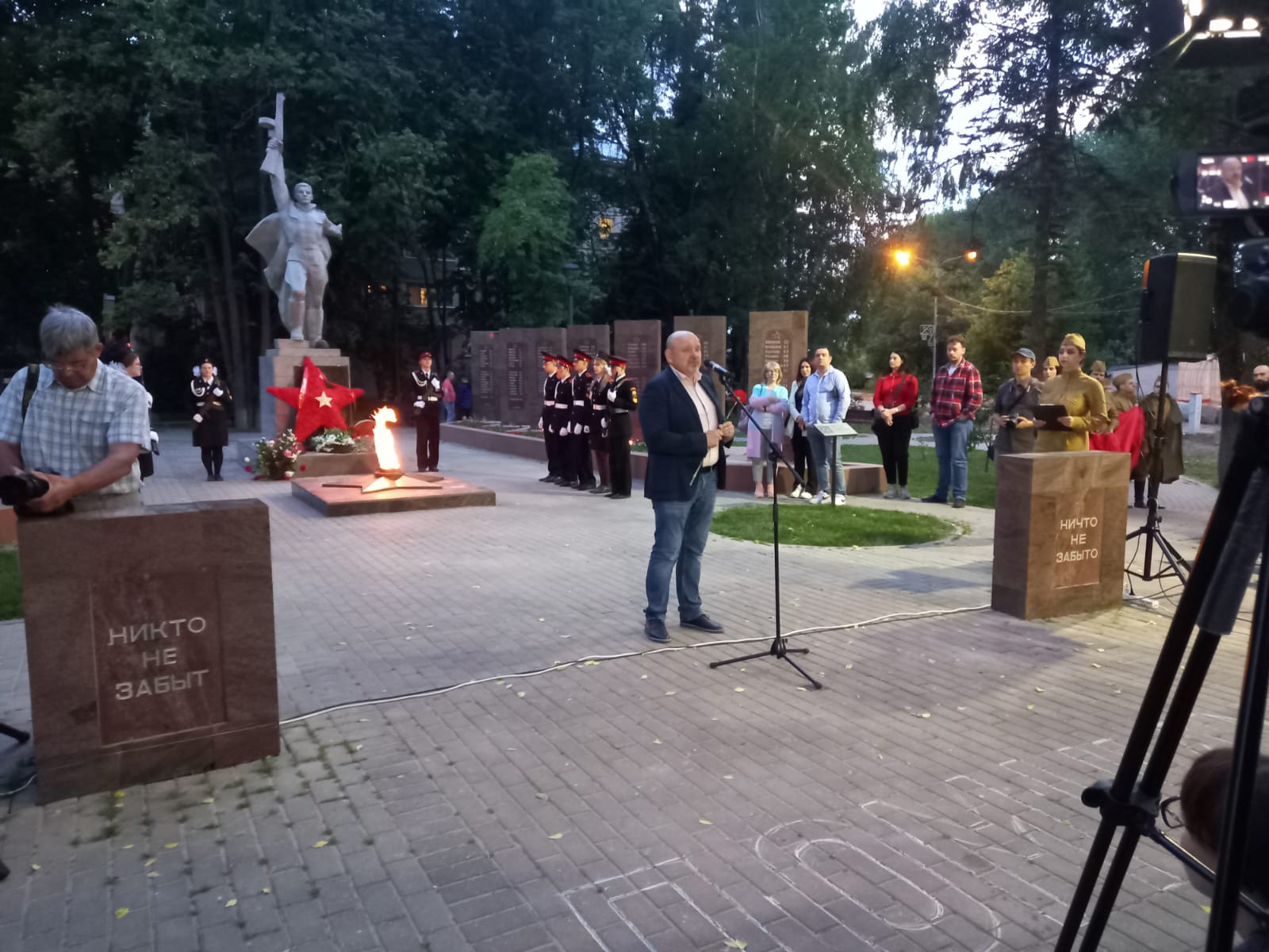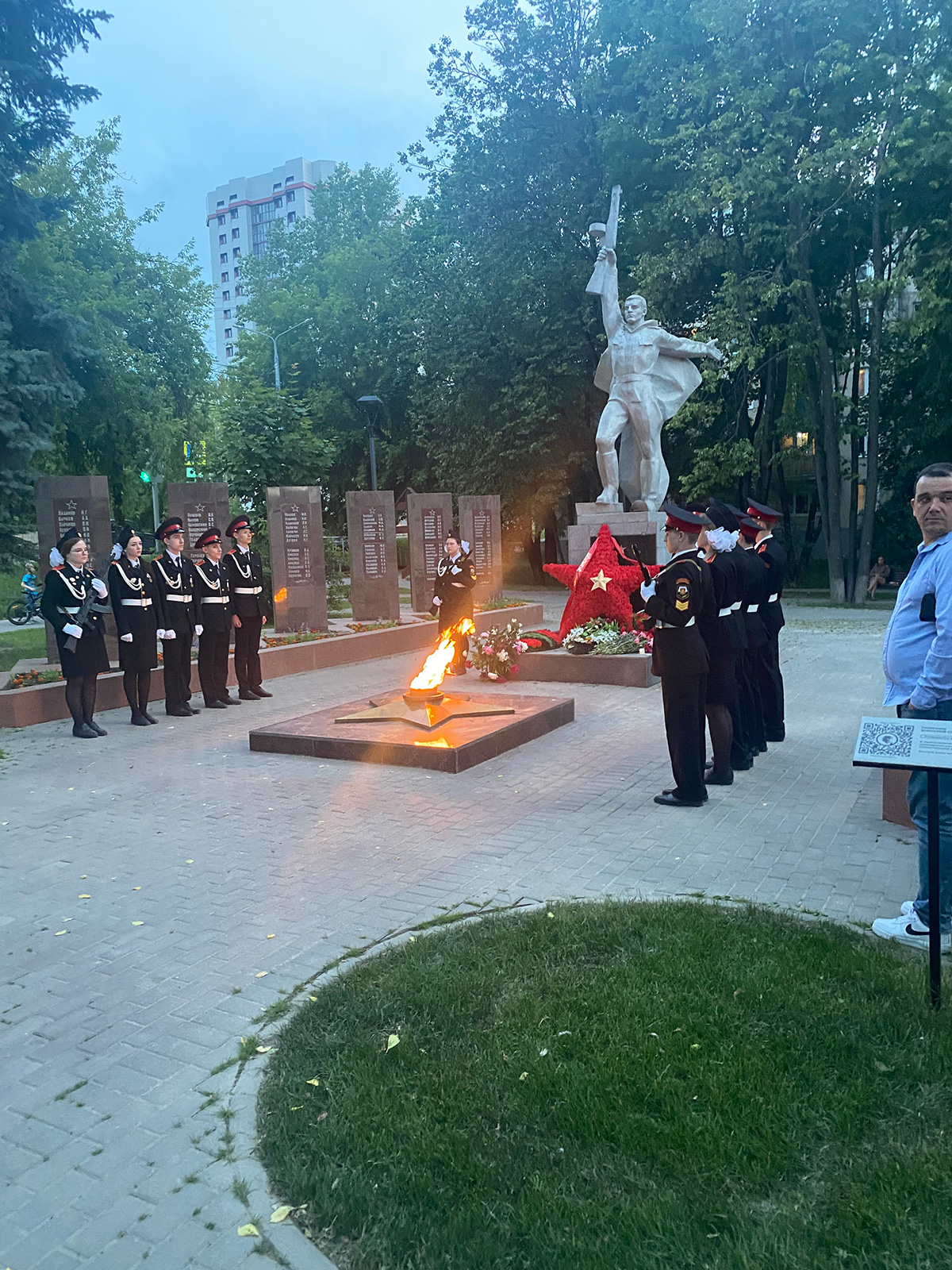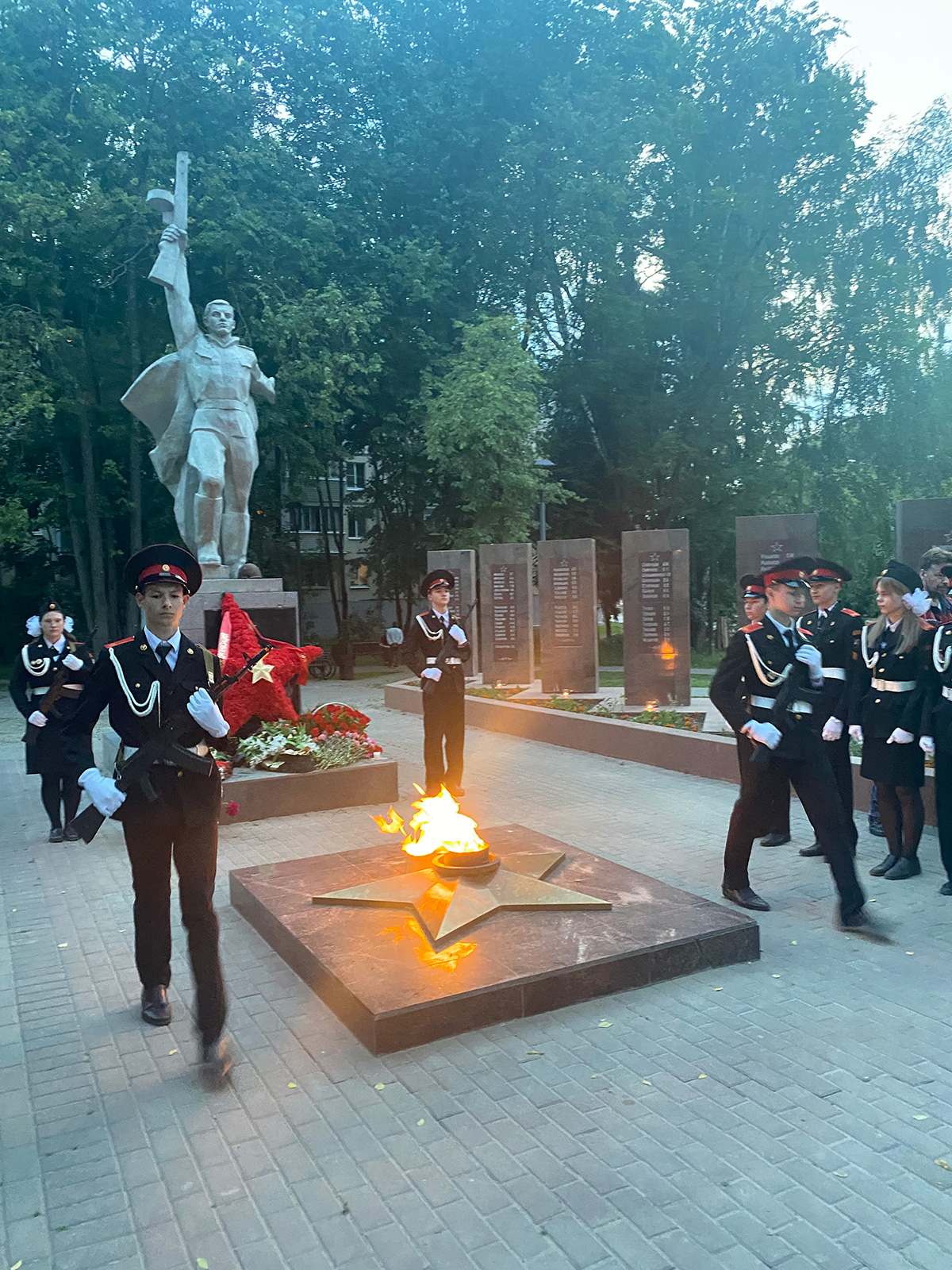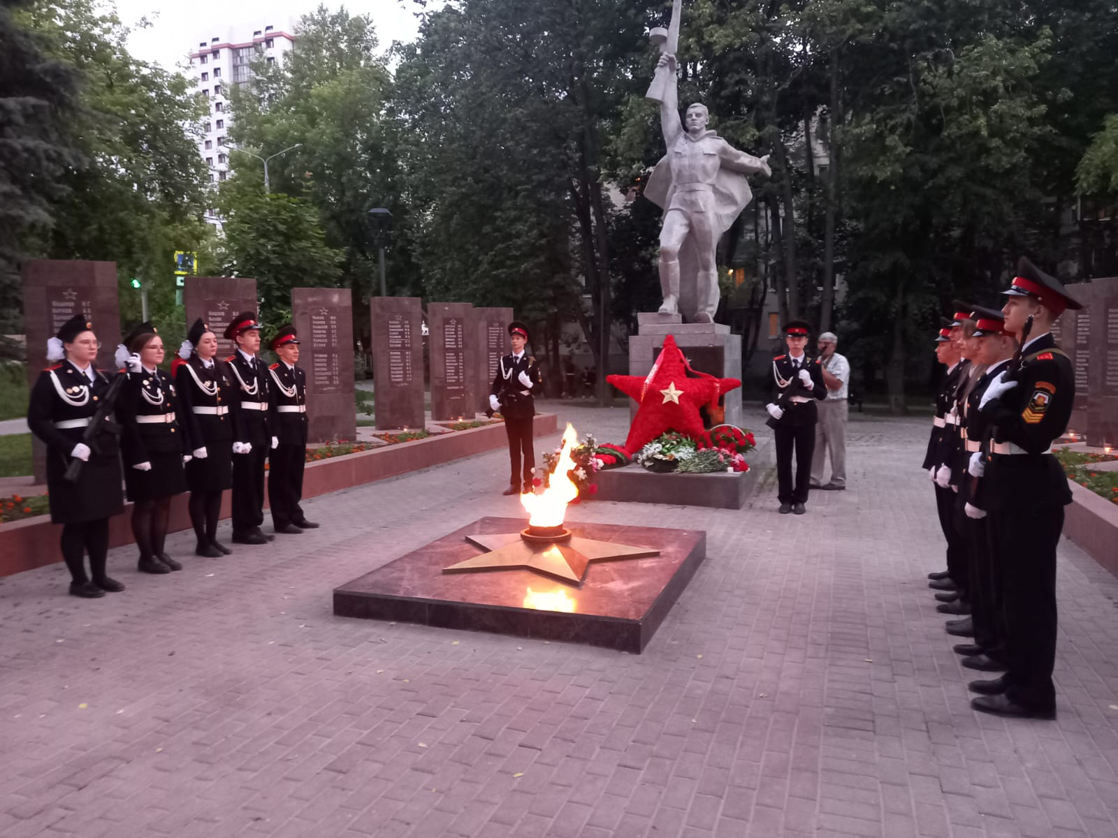 В 21.30 час у Вечного огня прошла акция «СВЕЧА ПАМЯТИ», на которой были зажжены свечи в честь 27 миллионов погибших в Великой Отечественной войне 1941-45 г.г. В торжественном карауле стояли кадеты города. В руках у юнармейцев были свечи.
