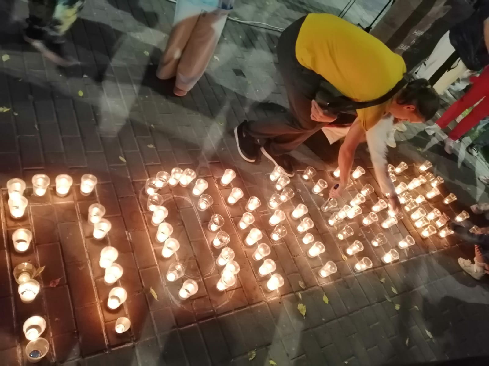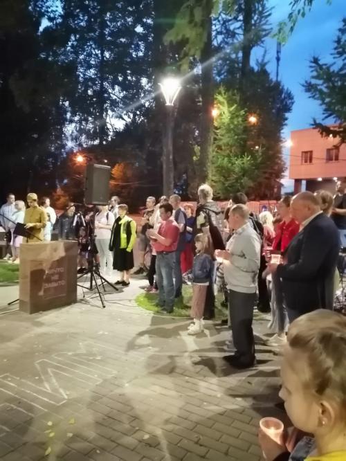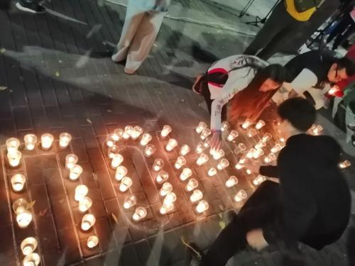 В завершении акции все присутствующие выложили из свечей слово «ПОМНИМ».