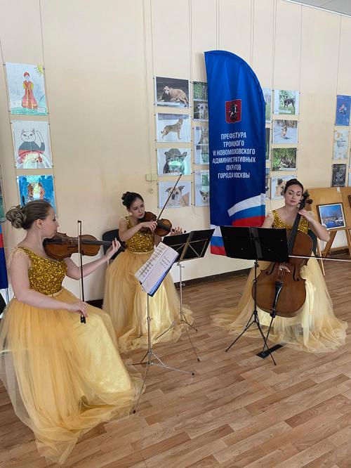 Перед началом торжественной части и концерта в фойе для ветеранов играло струнное трио, создавая замечательную атмосферу.