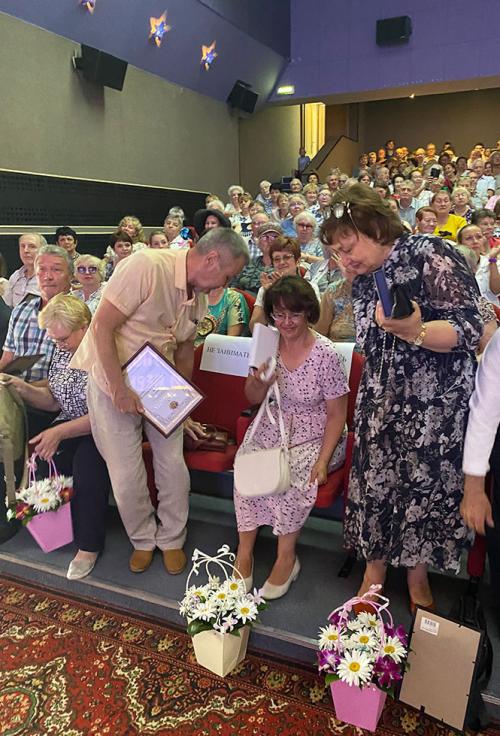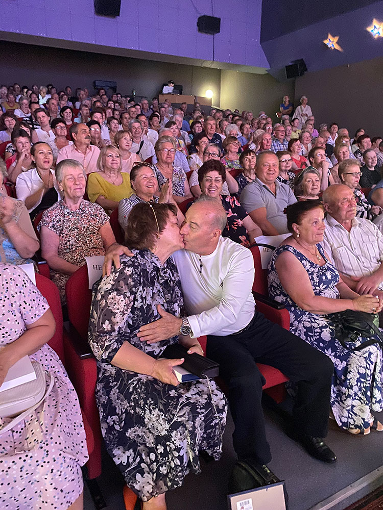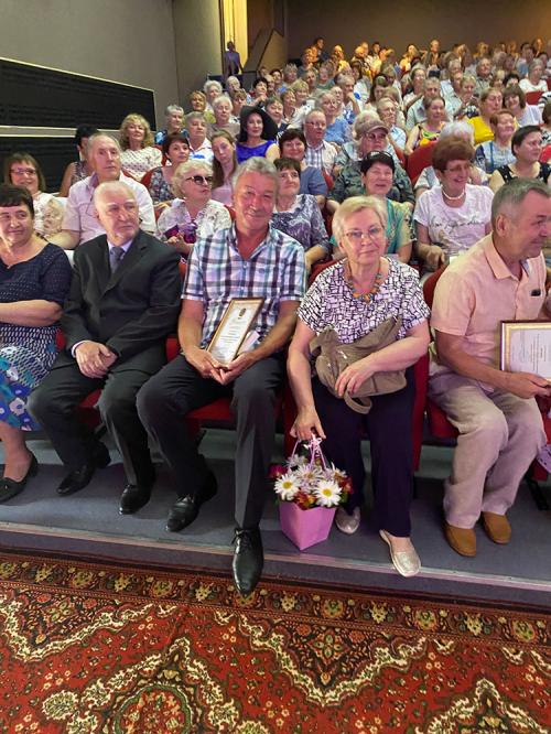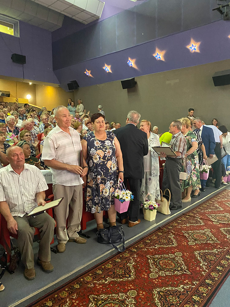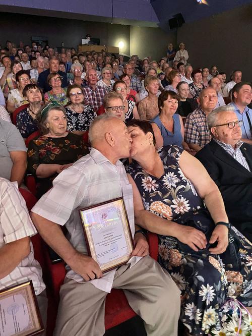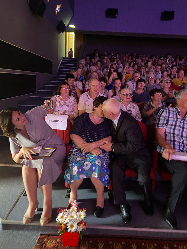 Затем на сцену были приглашены семейные пары, прожившие вместе более 30 лет. Им глава поселения вручил памятные подарки. Одна из приглашенных пар прожила в браке 60 лет. Ветераны их приветствовали бурными аплодисментами. И в заключении для всех приглашенных прозвучало громкое «ГОРЬКО».