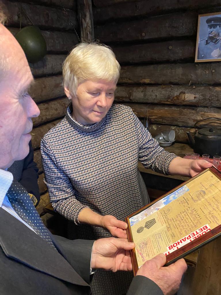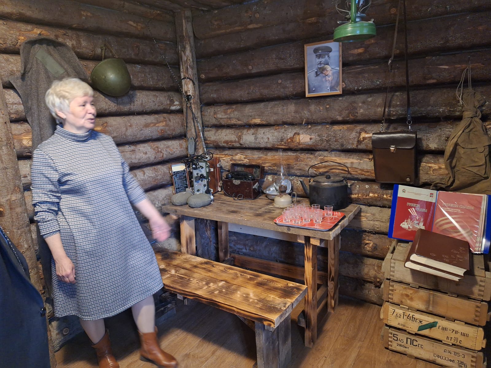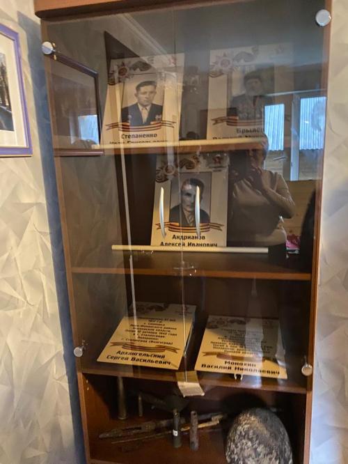 Целая группа ветеранов во главе с председателем Ольгой Ильиничной Кирсановой тепло и радушно встретили гостей. Все вместе посетили мемориал памяти погибшим землякам, возложили цветы, почтили память павших минутой молчания. Затем ознакомились с композицией музея, со стилизованной землянкой, где проводятся уроки мужества для учащихся школ.