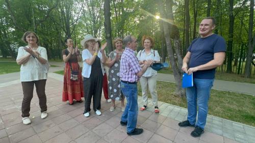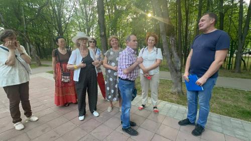 Андрей Воробьев, автор проекта "Троицкие Летописи", провел экскурсию для Совета Ветеранов Троицка. Он рассказал об истории становления Академгородка, первой школы, первом институте ИЗМИРАН. Также посетили Арт-Галерею Троицкий платок художников Олеси и Дмитрия Кузнецовых.