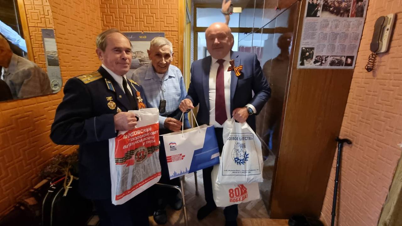 Сегодня в день 80-летия Великой Победы глава Троицка Владимир Дудочкин с председателем Совета Ветеранов Владимиром Родионовым посетили Ветерана Великой Отечественной войны — участника советско-японской войны, моряка Дмитрия Тимофеевича Лукаша.