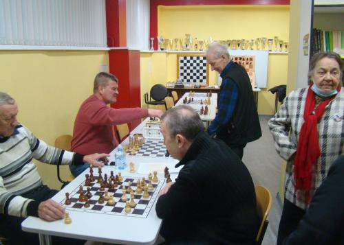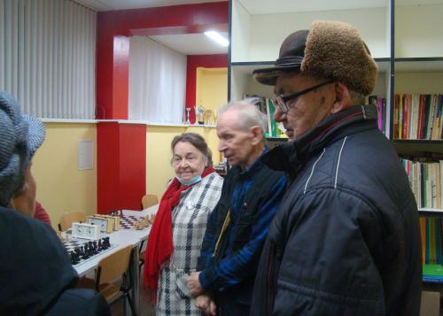 На фото: Троицк. Клуб «Гармония». Играют и наблюдают ветераны.